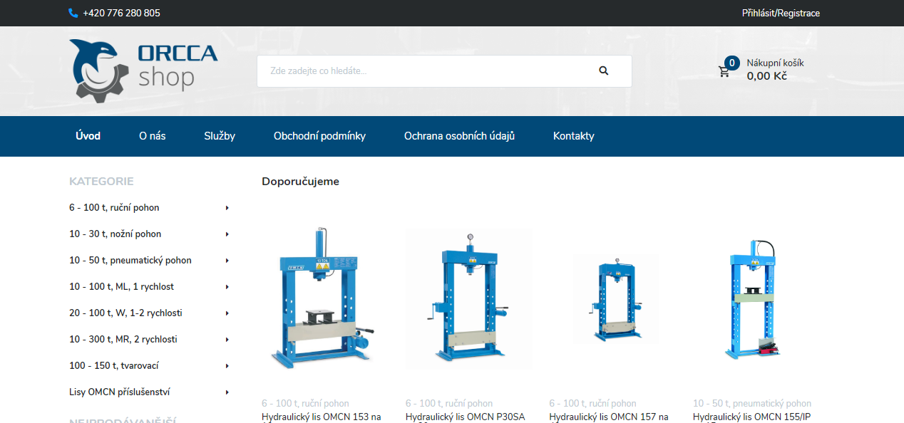 Jsme autorizovaní prodejci hydraulických lisů OMCN a příslušenství. Na našem e-shopu www.orrcashop.cz prodáváme hydraulické lisy s ručním, nožním i pneumatickým pohonem s maximální lisovací sílou do 300 tun.